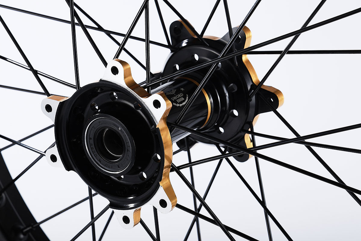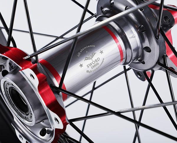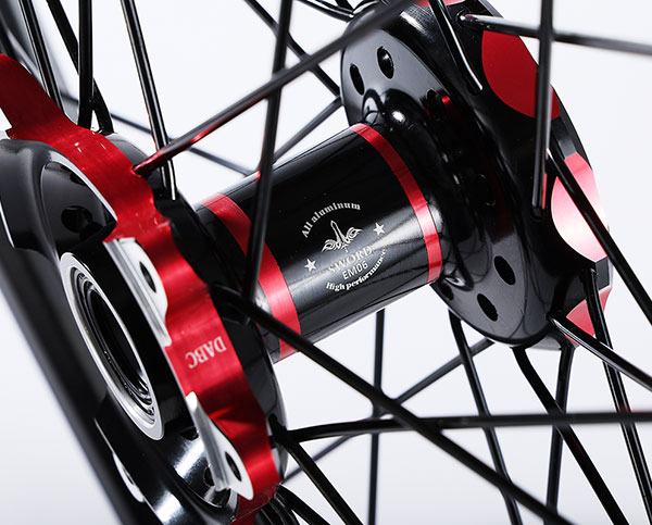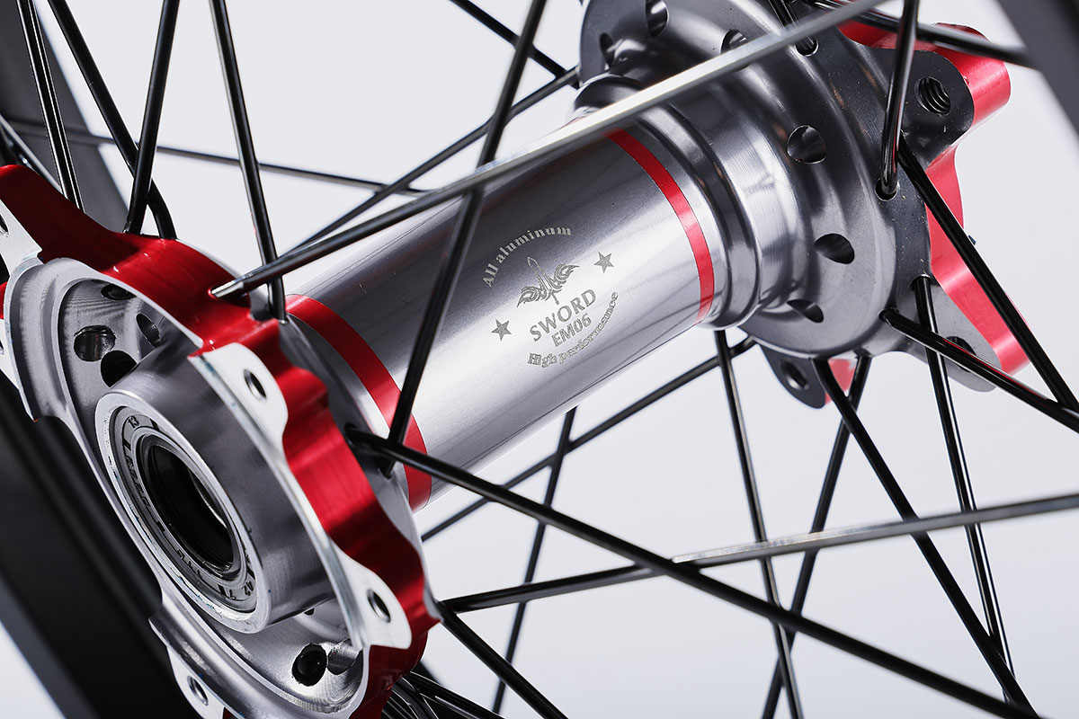 材質:7116AL T6,前輪:19*2.15" / 后輪:18*2.5",高強度鋁制輪圈(黑金/黑紅/鈦紅)