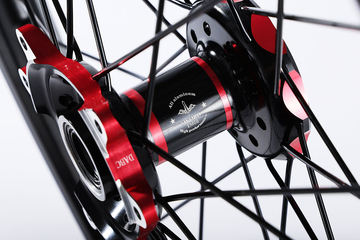 材質:6061AL T6,前鼓芯:M20*11G*36H / 后鼓芯:M20*11G*36H。鍛造花鼓(雙色陽極)