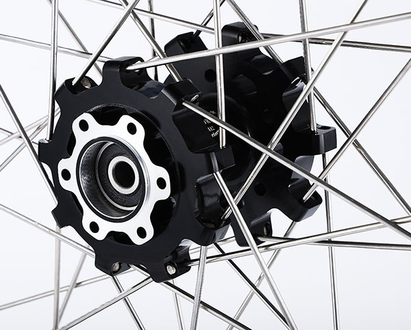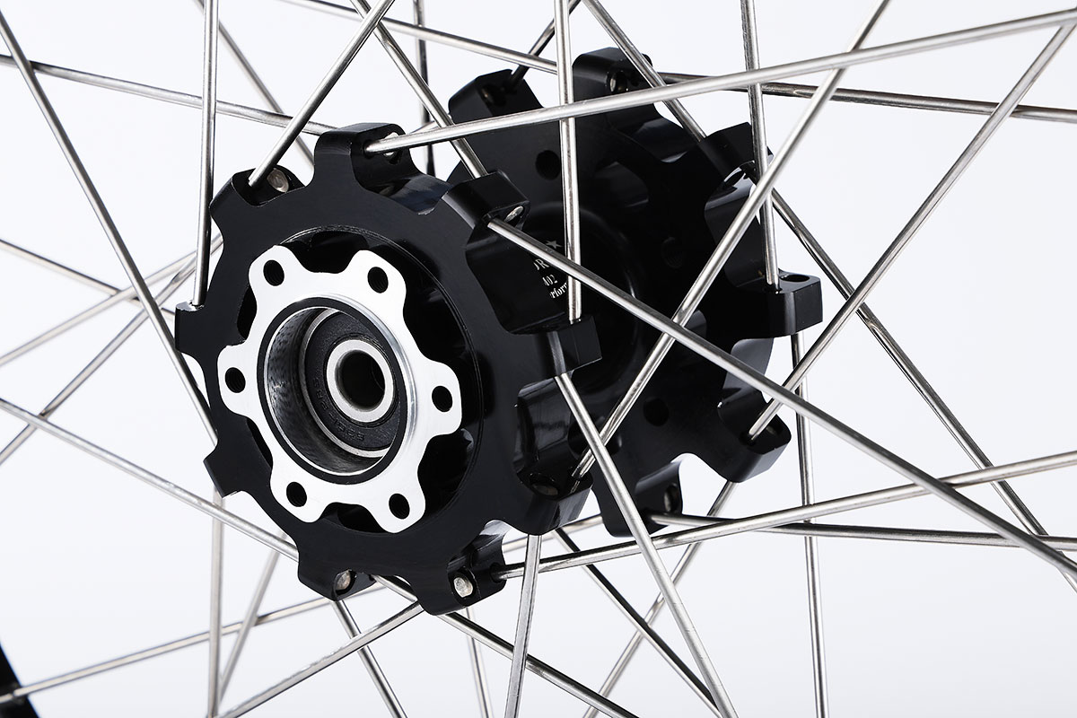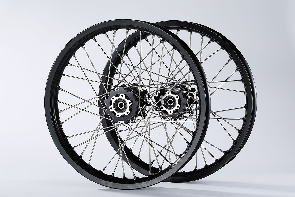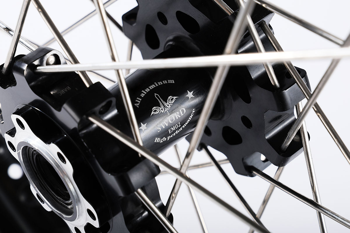 產品名稱:競技輪輞總成 車圈:材質:7116AL T6,前輪:19*1.6"http://后輪:18*1.85",高強度鋁制輪圈 花鼓:材質:6061AL T6,前鼓芯:M20*10G*36H//后鼓芯:M12*10G*36H。鍛造花鼓 輻條:材質:304#不銹鋼,更高韌性與強度 適配車型:RFN戰神