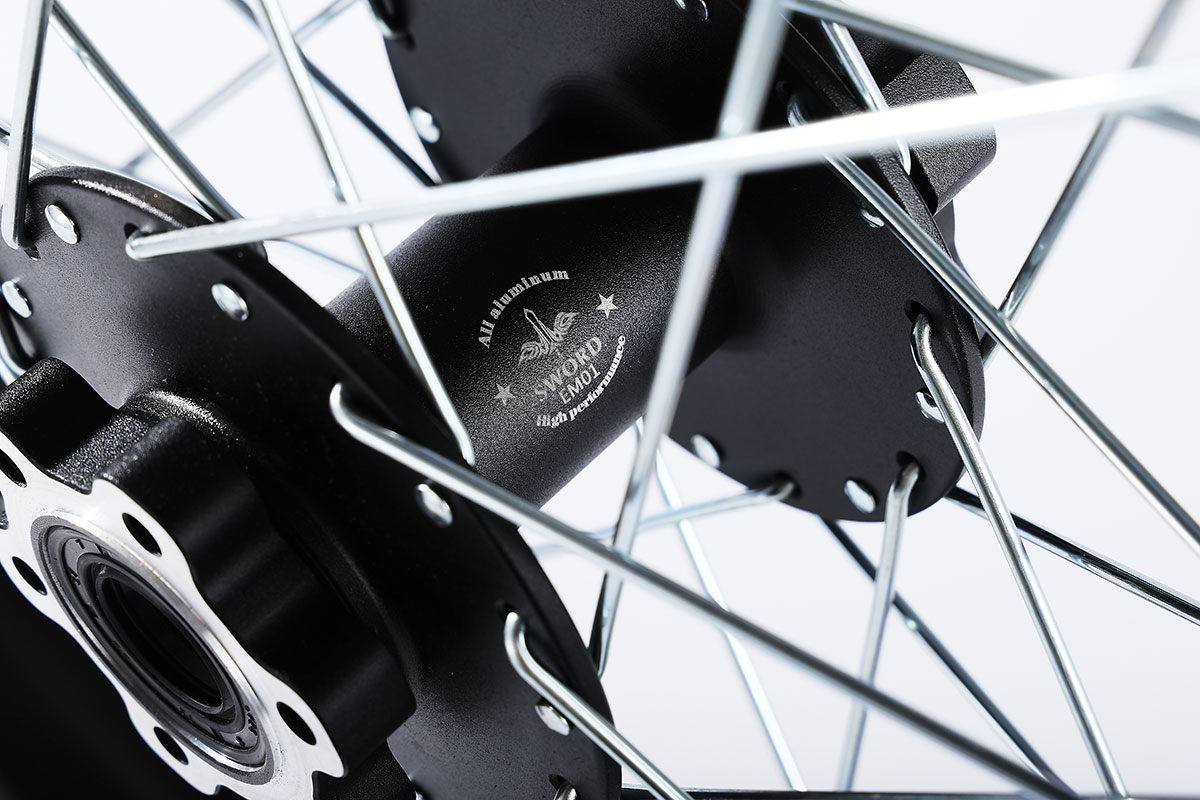 產品名稱:滑胎輪輞總成 車圈:材質:7116AL T6,前輪:17*1.6"http://后輪:17*2.15",高強度鋁制輪圈 花鼓:材質:6061AL T6,前鼓芯:M20*12G*36H//后鼓芯:M15*12G*36H。鍛造花鼓 輻條:材質:65MN,過鹽霧測試,防氧化涂層 適配車型:虬龍輕蜂
